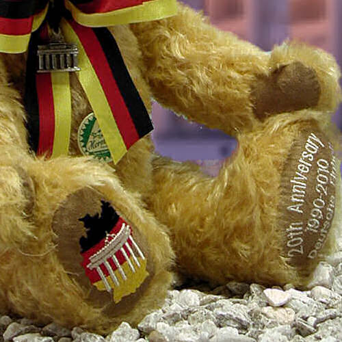 Erst mit dem Tag der Deutschen Einheit am 3. Oktober 1990 öffnete sichdie Grenze und die HERMANN Bären konnten wieder ungehindert den Ortihrer Entstehungsgeschichte in Thüringen besuchen - "ein Teddybärkehrt heim". Mit dem "Teddybär zum Tag der Deutsche Einheit" wolltenwir dieses Ereignis feiern und die ganze Welt war begeistert.