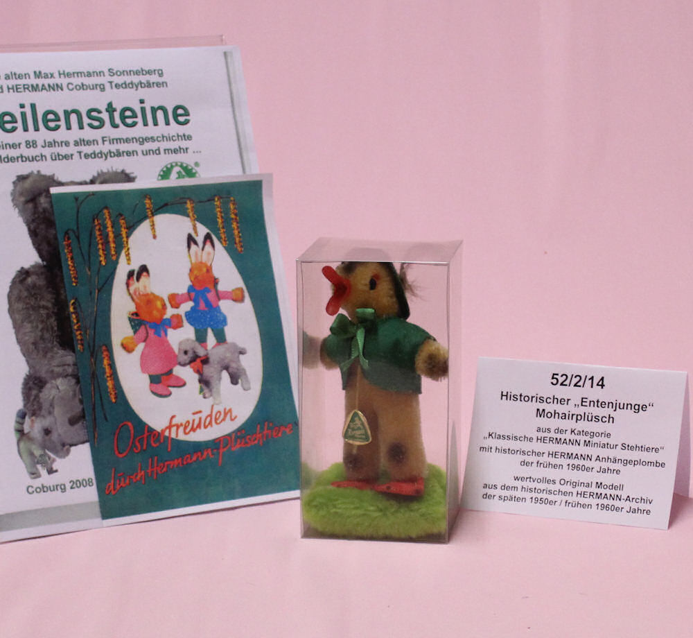 Die Artikelnummer bedeutete: "52" = Modell "Entenjunge", "2" = Mohairplüsch, "14" = Größe in cm