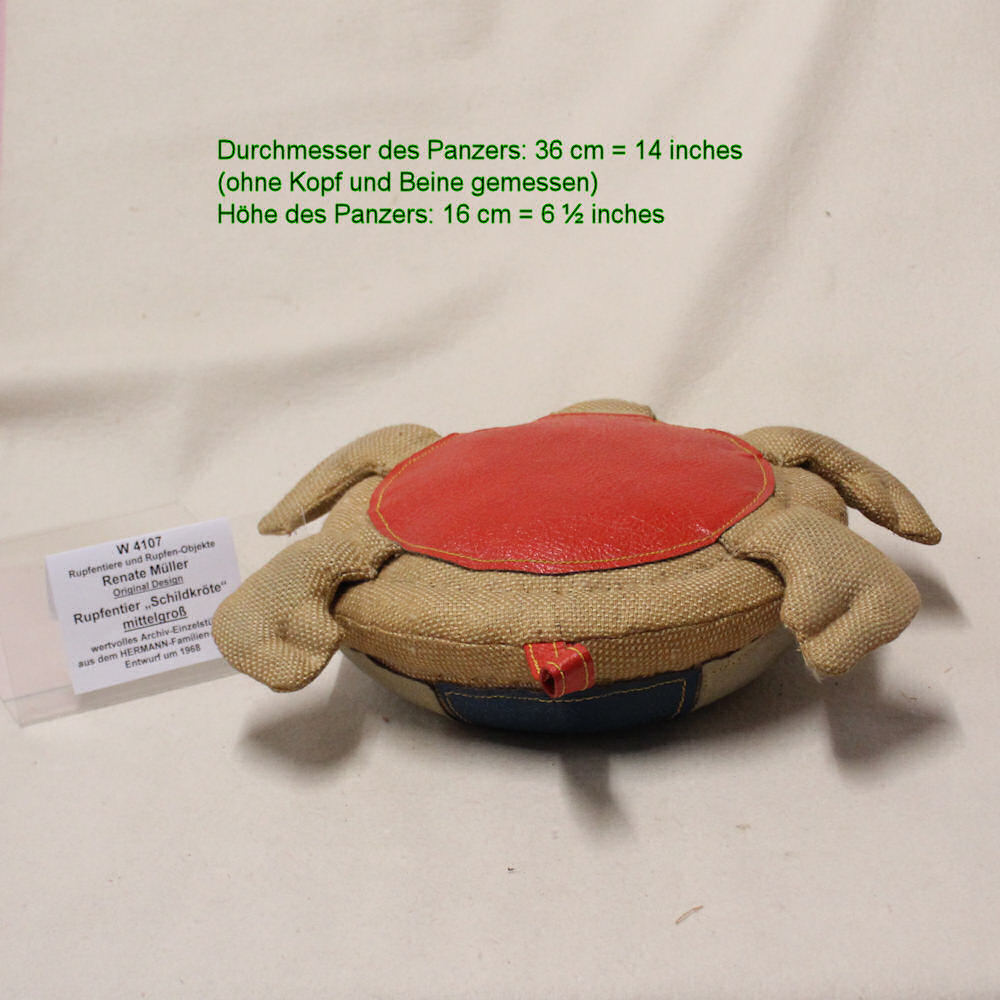 Größe: Durchmesser des Panzers: 36 cm = 14 inches (ohne Kopf und Beine gemessen)