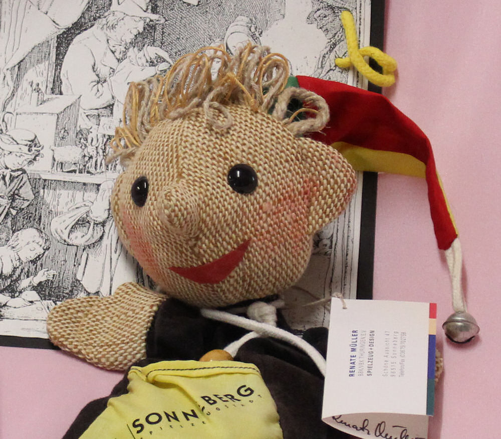 Stimme: in der Tasche steckt eine Quietsch-Stimme mit "Kasperle 09/65"