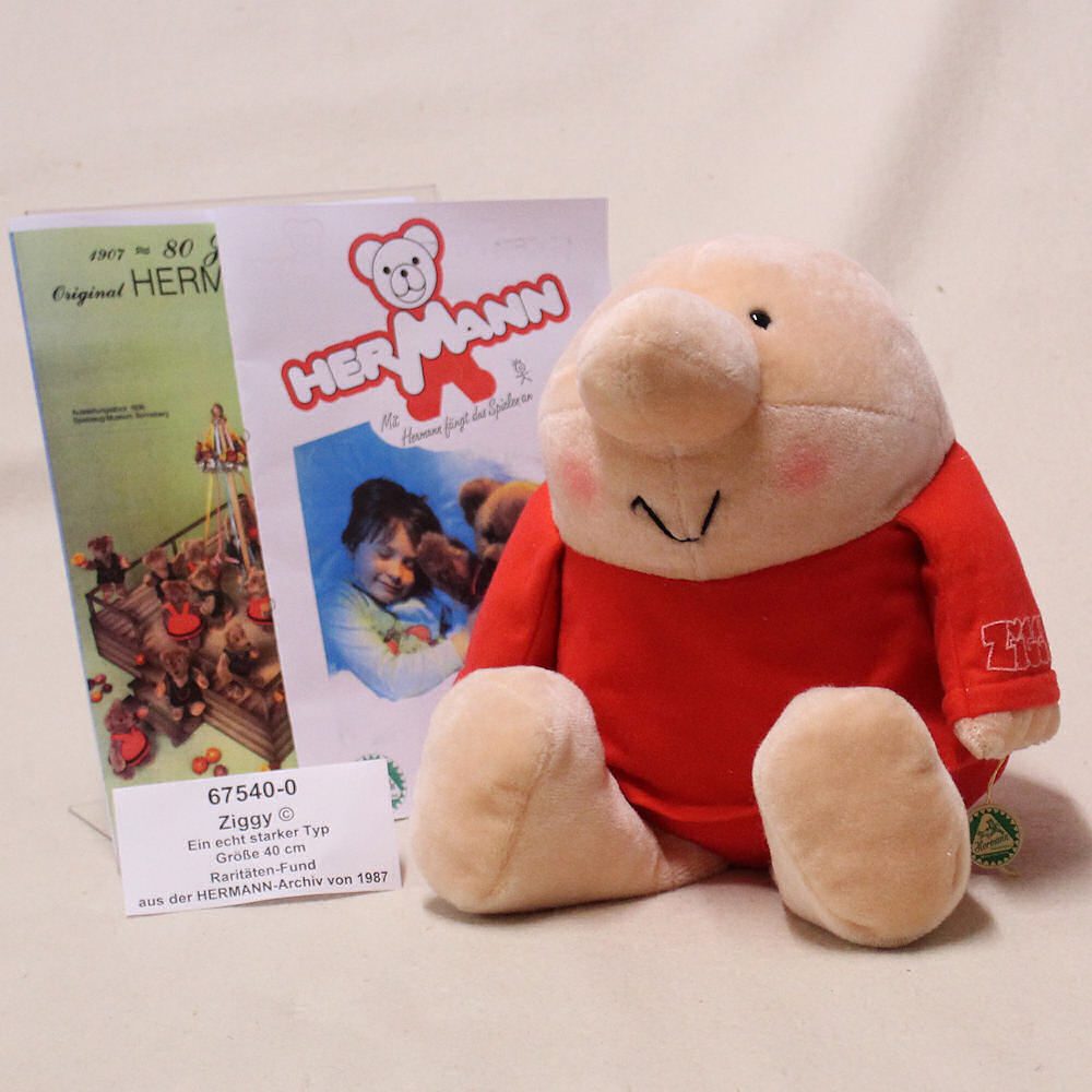 Als Klassik-Ziggy, Schlafmützen-Ziggy, Bayern-Ziggy und mit und ohneHund gab es unsere Ziggy © Plüschfiguren damals, Ende der 1980erJahre, in den unterschiedlichsten Ausführungen und in 5 verschiedenenGrößen von 18 cm bis 75 cm. Ein paar ganz wenige unserer damaligenZiggy © Figuren in der Größe 40 cm haben sich heimlich inunserem Archiv versteckt. Als wertvolles Zeit-Dokument von damals, freuensie sich heute Zeugnis abgeben zu dürfen von einer bedeutenden Epocheinnerhalb unserer über 100 Jahren Firmengeschichte als die Herstellungvon Lizenzartikeln mit ihren jeweiligen Alleinherstellungsmerkmalen unsererHERMANN Kollektion Ausdruck verlieh.