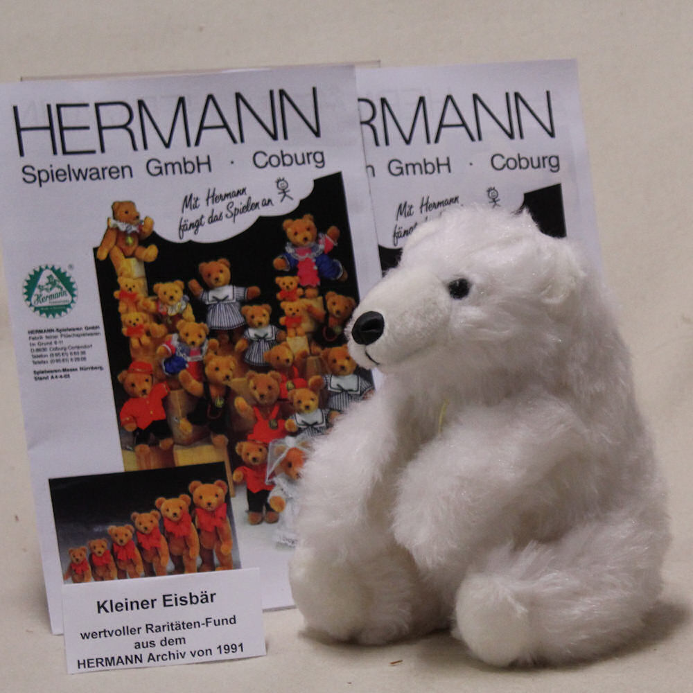 Besonderheit: der kleine Eisbär trägt natürlich noch keine HERMANN-Halsmarke, da die HERMANN-Halsmarke erst im August 1993 eingeführt wurde. Dies bedeutet einen sicheren Nachweis, dass dieser kleine Eisbär vor 1993 hergestellt wurde.